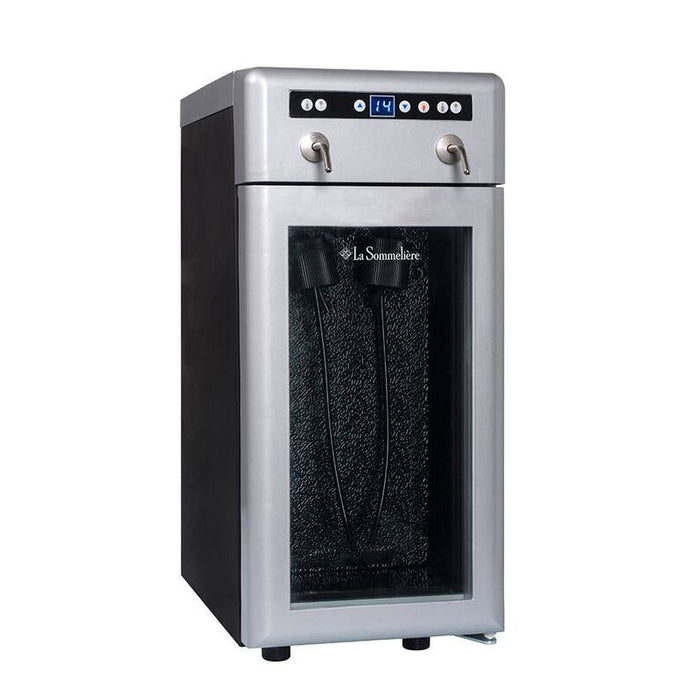 Der Weinkühler La Sommelière DVV22 ist die professionelle Lösung für den glasweisen Weinausschank auf höchstem Niveau. Dank Stickstoff hält das Gerät geöffnete Flaschen bis zu drei Wochen frisch und bietet eine konstante Serviertemperatur zwischen 4 °C und 18 °C. Mit Platz für zwei Flaschen und einem eleganten, modernen Design ist der DVV22 ideal für Restaurants, Weinbars und Profis, die Wert auf Qualität und Präsentation legen.