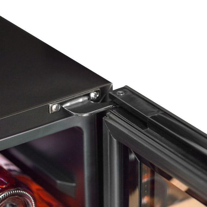 Der SLS45DZ besticht durch sein komplett schwarzes Design, das sowohl modern als auch zeitlos wirkt. Die UV-beständige Glastür schützt Ihre Weine vor schädlicher Strahlung und bietet gleichzeitig einen schönen Blick auf die Sammlung, dezent beleuchtet durch die interne LED-Beleuchtung. Dank seiner klaren Linien und der kompakten Größe (84,8 cm Höhe, 49,5 cm Breite und 58 cm Tiefe) fügt sich dieser Weinkühlschrank mühelos in vielfältige Innenräume ein. Im Inneren sorgen vier teilausziehbare Buchenholzregale für eine elegante Optik und sind einfach zu bedienen.